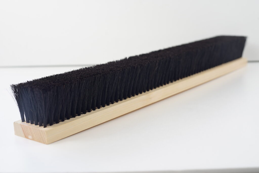 モルタルや土間仕上げ時の水引き工程に適した馬毛製の左官刷毛です。