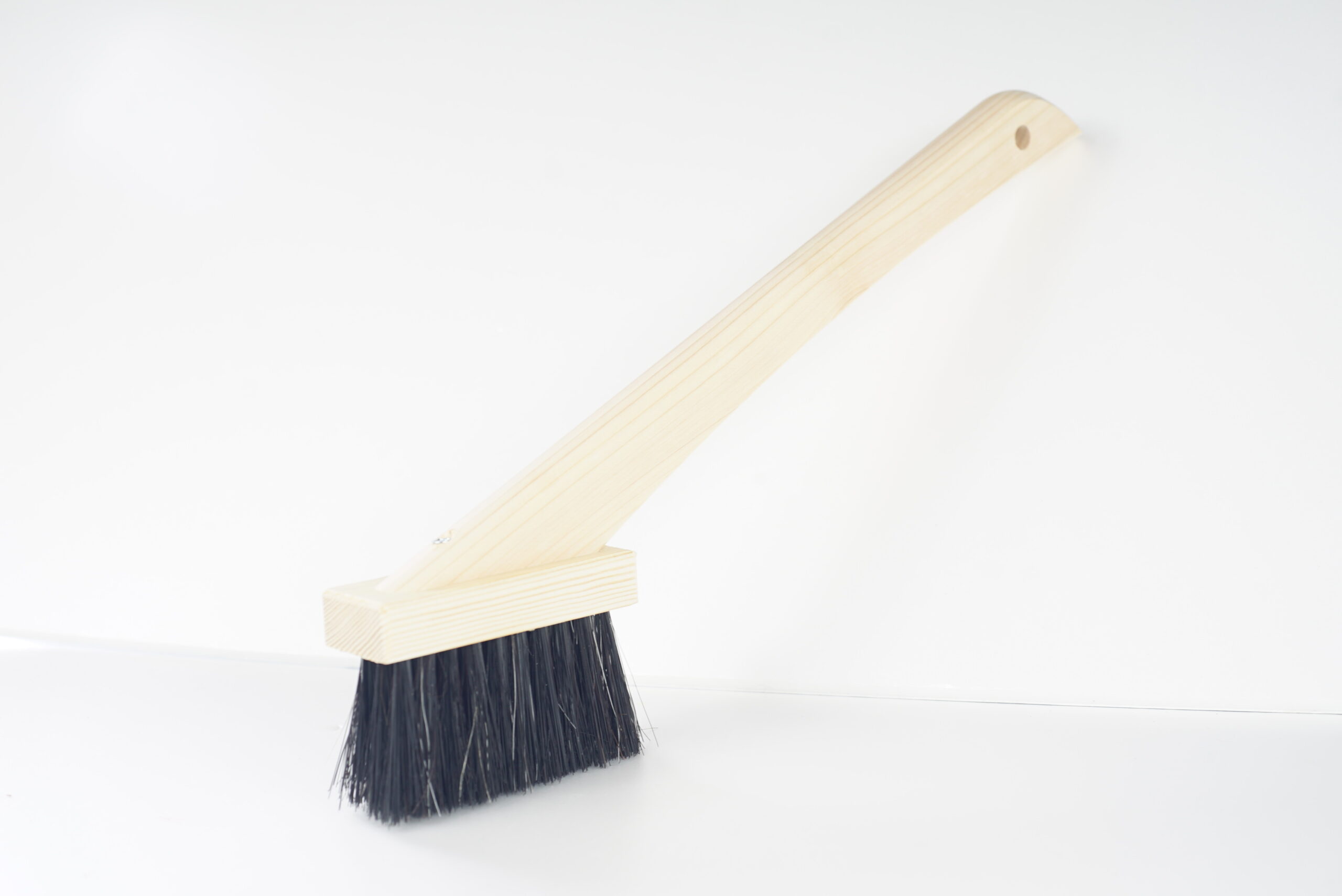 モルタルや土間仕上げ時の水引き工程に適した混毛タイプの左官ブラシです。