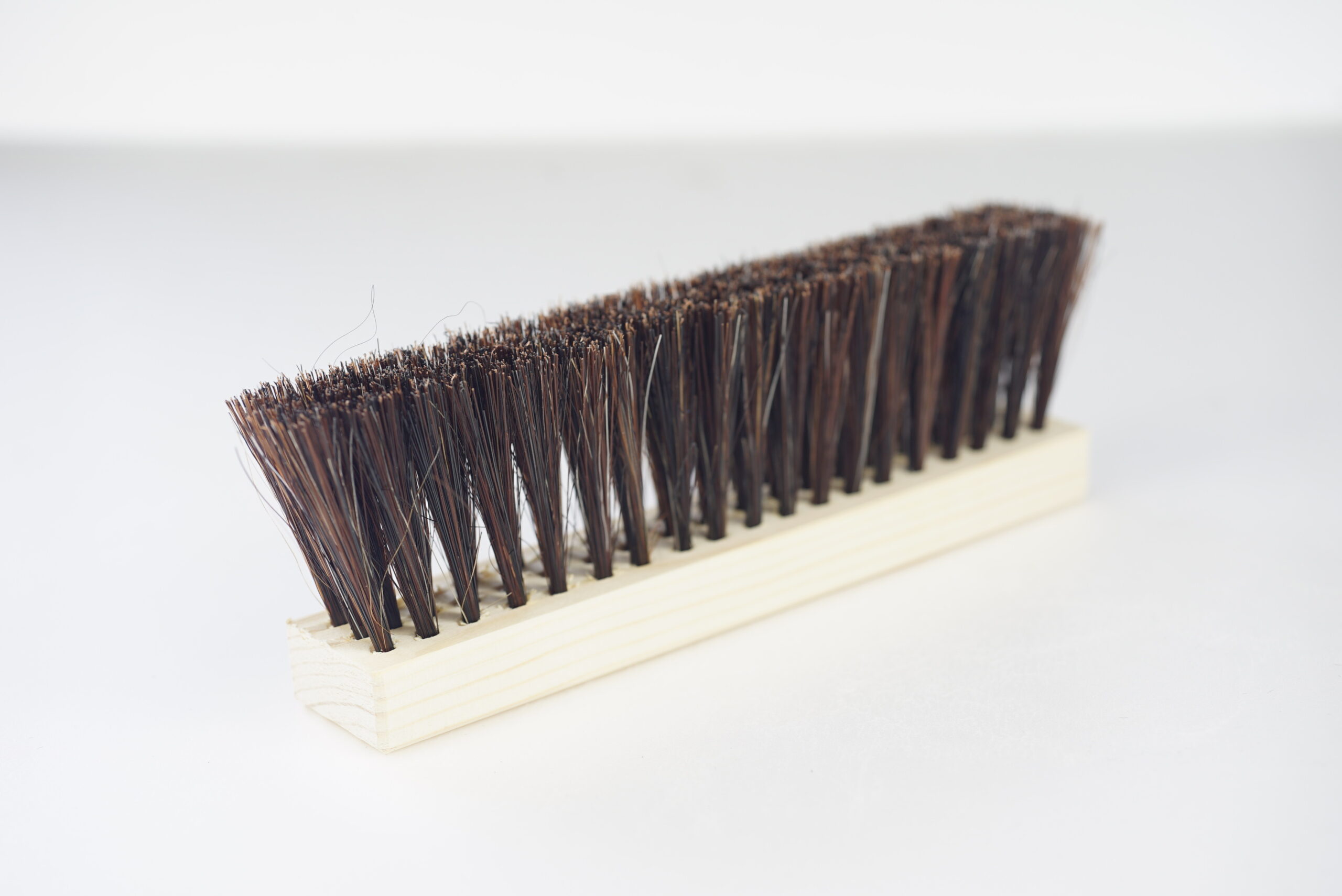 本製品は、しなやかな天然馬毛と、弾力性に優れた化学繊維を独自のバランスでブレンドしています。 天然素材ならではの「なじみの良さ」を活かしつつ、化学繊維の「強靭さ」を加えることで、初心者から熟練の職人まで扱いやすい、バランスの取れた操作感を提供します。