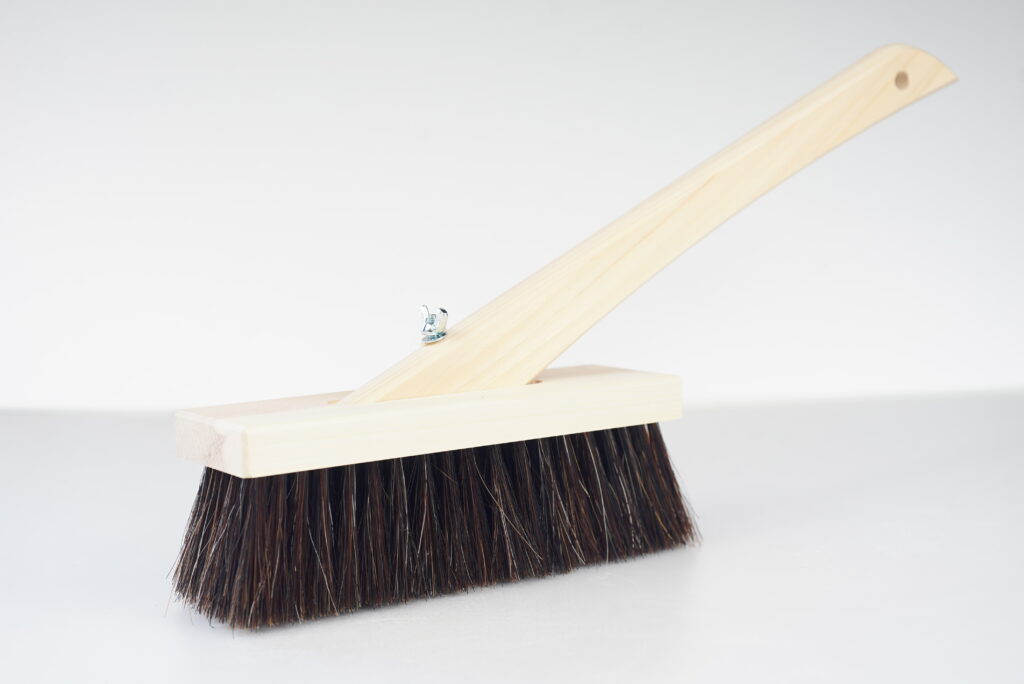 モルタルや土間仕上げ時の水引き工程に適した混毛タイプの左官ブラシです。