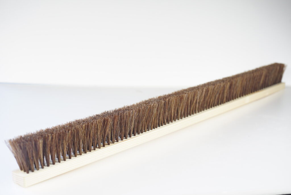 モルタルや土間仕上げ時の水引き工程に適した馬毛製の左官刷毛です。
