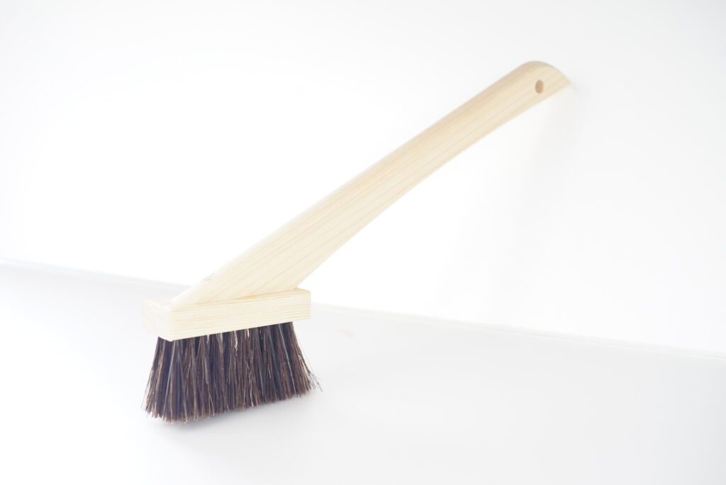 モルタルや土間仕上げ時の水引き工程に適した混毛タイプの左官ブラシです。