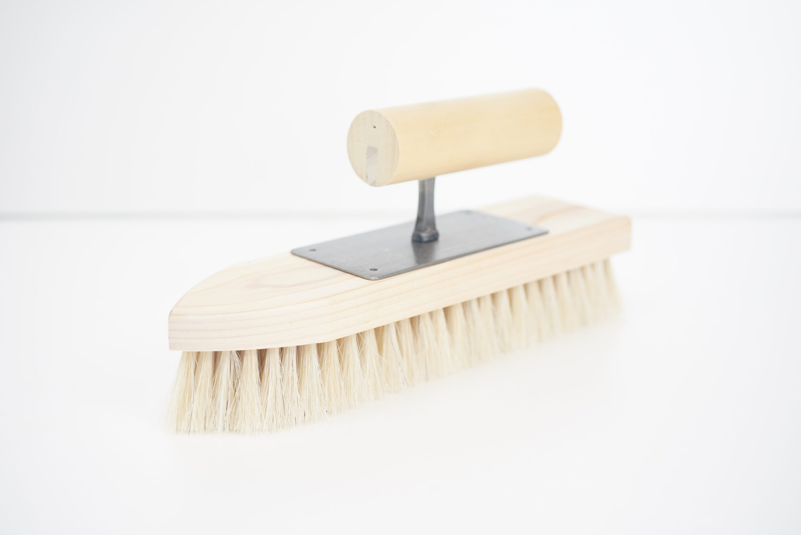 洗い出し仕上げや土間仕上げ時の水引き工程に適した、純馬毛(白毛)製の左官刷毛です。